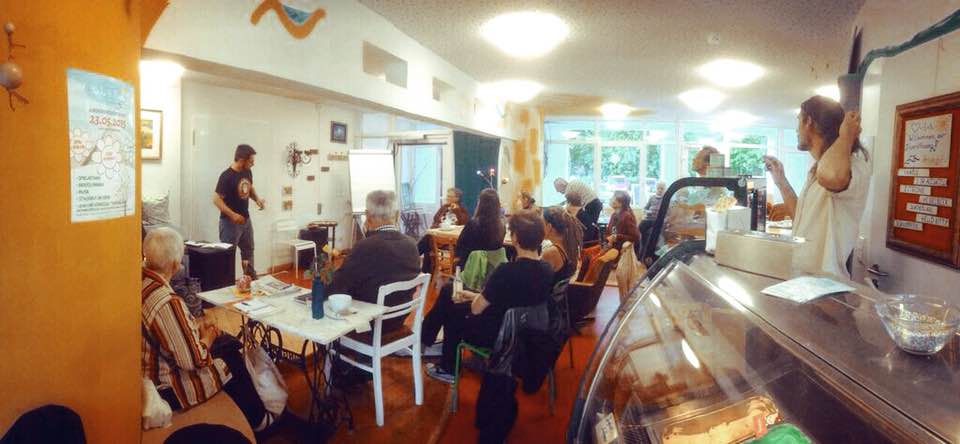 LOCATION The event took place in a neutral space, i.e. not in a research institute. A cafe was chosen as it provided a relaxed atmosphere naturally conducive to discussion. “Panke und Meer” was particularly well suited to this event thanks to its role as a community hub. Paul Müller, the cafe owner, acted as the host of the events and was responsible for moderation to ensure respectful exchange.