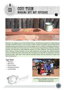 I was part of a team that worked to develop a locally produced nut sheller for cracking Morama (‘Cgui’ in the local Naro language), a very hard nut indigenous to the Kalahari traditionally valued by the local people for its high nutritional content. These nuts are usually roasted then cracked by hand using sticks or stones – a laborious and time-consuming process that often results in injuries. We developed prototypes for both a simple handheld nutcracker for household use and a high-capacity sheller that could be used for producing value-added Morama products – for example a hot drink, ‘Cgui Tsam’ – providing a source of income for local entrepreneurs.